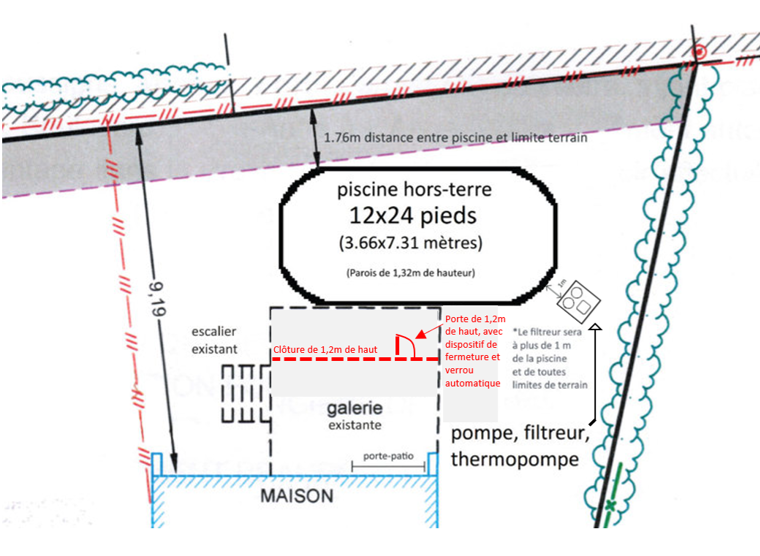 Ce plan servira à représenter l’emplacement de la piscine sur votre terrain, de même que la plateforme d’accès et les accessoires de fonctionnement. C’est à partir de ces précieuses données que nos analystes pourront approuver ou non votre demande de permis. Appliquez-vous!