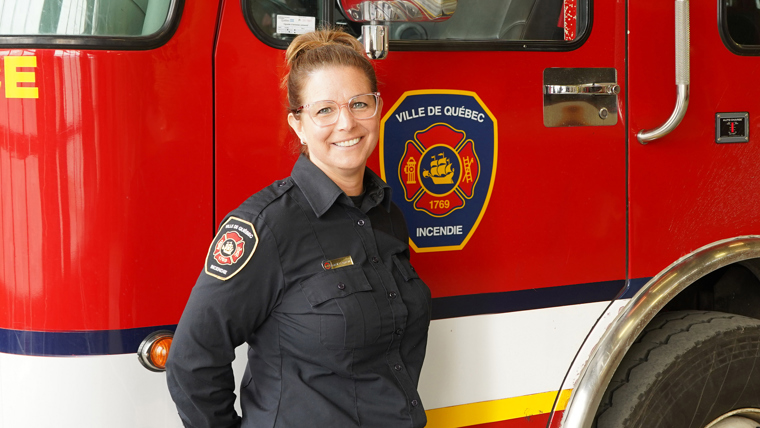« Comme lieutenante en prévention incendie, dans le cadre de mon travail, je constate encore trop souvent des avertisseurs de fumée non fonctionnels. Pourtant, cet appareil sauve des vies. Vérifiez-le : ça prend deux minutes, et ça peut vous protéger et protéger vos proches. » Geneviève Barrette, lieutenante à la prévention incendie du SPCIQ