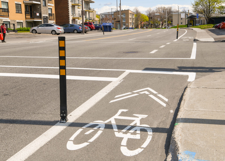 Certainement le plus connu, le bollard est utilisé notamment pour marquer la séparation entre la route et une bande cyclable. Il vise à canaliser ou contrôler la circulation. Par exemple, il peut marquer le début d’une piste cyclable et dissuader les automobilistes d’y circuler.