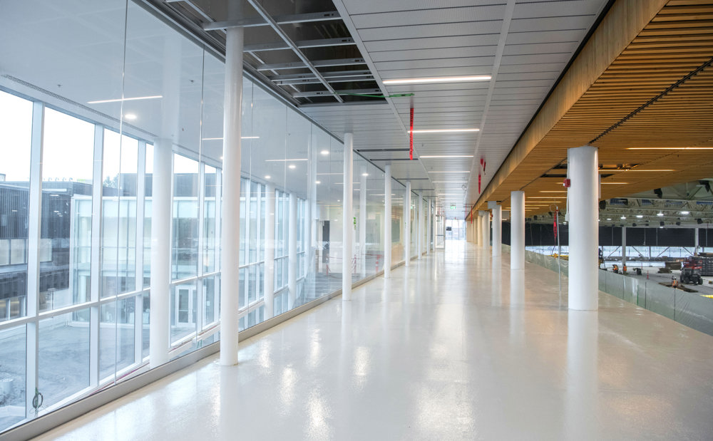Ceinturant l’anneau de glace, une piste d’athlétisme de trois corridors est à la disposition des sportifs à longueur d’année. Lors d'événements ou de compétitions, des gradins amovibles d'une capacité allant jusqu'à 1500 places pourront être installés directement sur cette piste, ce qui amènera les spectateurs encore plus près de l’action.