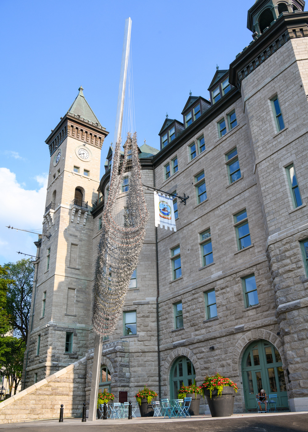 Sur les terrains de l’hôtel de ville de Québec se trouve l’œuvre d’art Codex Populi, une imposante création de l’artiste wendat Ludovic Boney. Cette sculpture de 23 mètres de hauteur, soit l’équivalent d’un bâtiment de 7 étages, compte 25 colliers (wampums) sur son mât soutenant 9 520 crochets. Ces crochets symbolisent notamment les décisions politiques et fondatrices prises lors de la Conférence de Québec.