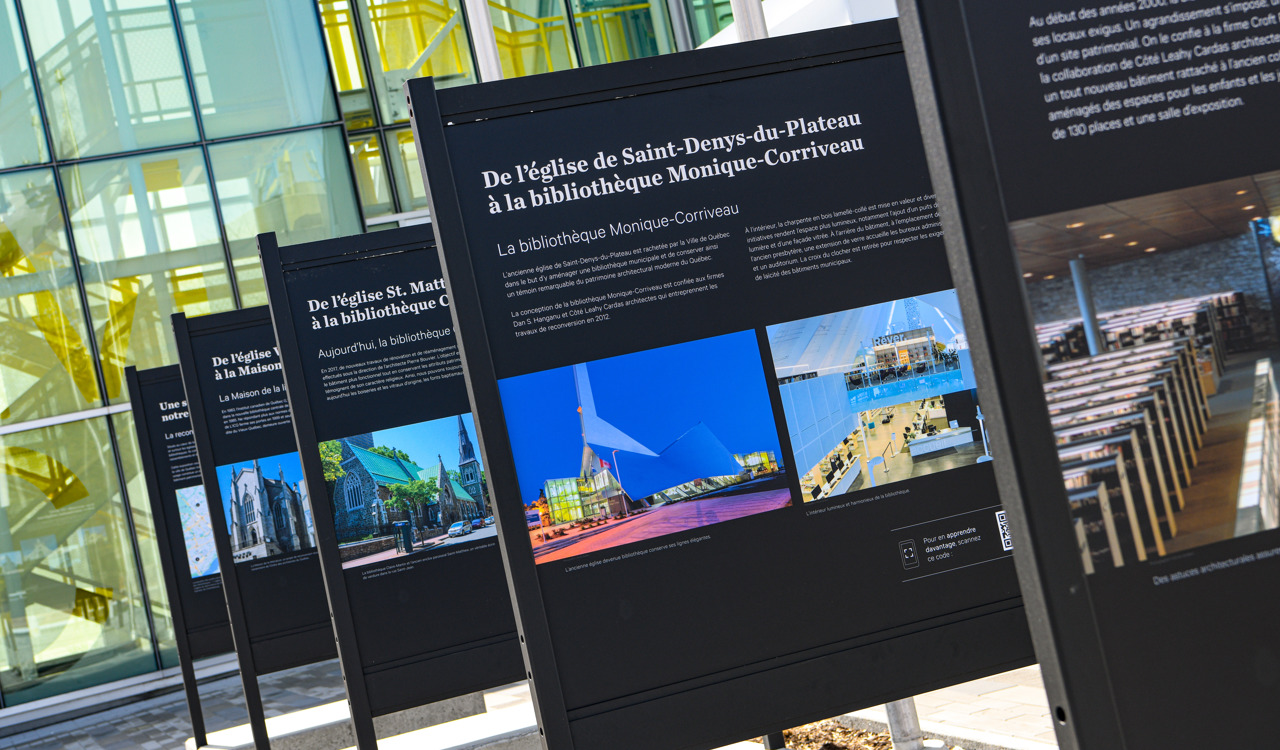 En plus de nombreuses photos d’archives et informations historiques, des témoignages et entrevues, accessibles depuis des codes QR, viendront enrichir votre visite!