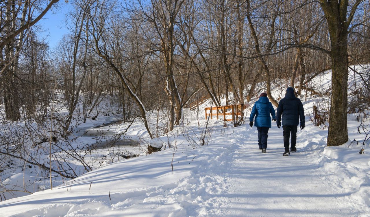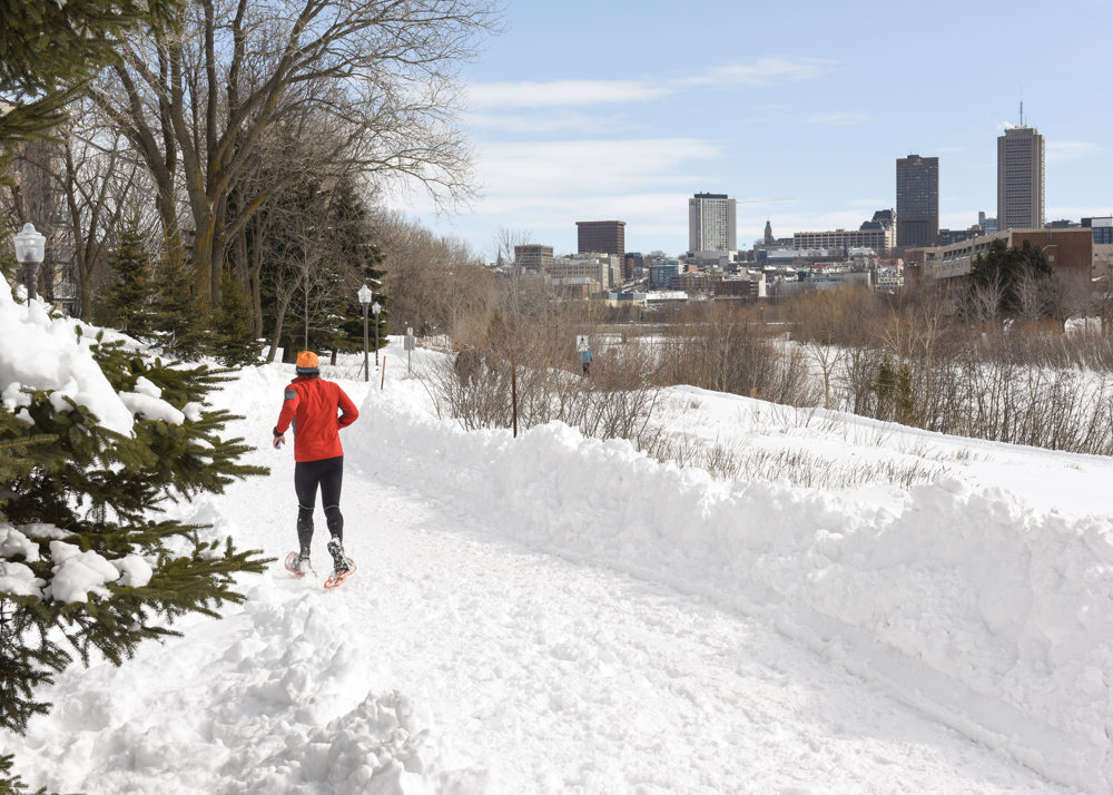 Plusieurs parcs de la Ville rendent accessibles les sentiers en hiver pour la randonnée pédestre hivernale.
